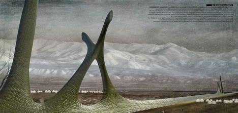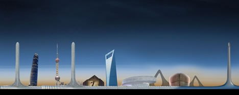 Silk Road Map Evolution diventa una città globale per il futuro composta da lunghissimi tunnel e torri di forma variabile altamente sostenibili e abitabili. Questi piccoli mondi abitabili sono organizzati in grattacieli verticali e grattacieli circolari e la loro forma è dettata dalle funzioni interne e dal loro rapporto con la linea ferroviaria e il mondo naturale. Scopo fondamentale di questo innovativo progetto di città spaziale sarà quello di ridurre al minimo la percentuale di suolo impiegata per la costruzione della struttura urbana, al fine di contenere i problemi di sviluppo architettonico delle grandi megalopoli di fronte al problema dell’incremento demografico e della sovrappopolazione delle città attuali. Scompariranno sobborghi marginali e quartieri periferici che creano grosse problematiche sociali.