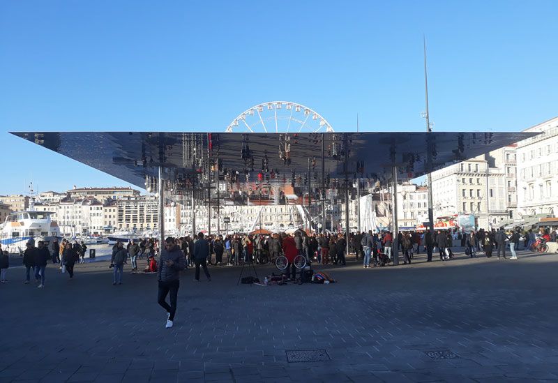 Da qui poi la strada è tutta in discesa per arrivare direttamente sotto all’Ombrière di Norman Foster, la copertura a specchio realizzata dall’architetto inglese nel 2013 ormai diventata uno dei simbolo della città.