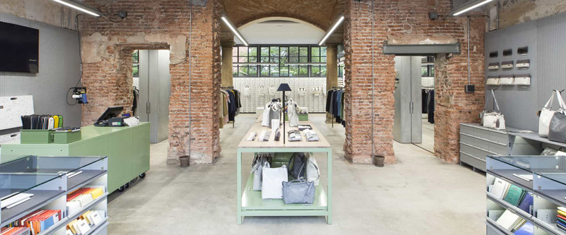 Unico store in Italia del marchio fondato dai fratelli svizzeri Markus e Daniel Freitag, il negozio di viale Pasubio è un indirizzo imprescindibile per gli amanti degli accessori fabbricati con i teloni di camion che qui possono trovare oltre 1500 pezzi unici realizzati con materiali riciclati e la linea di abbigliamento biodegradabile F-abric.
