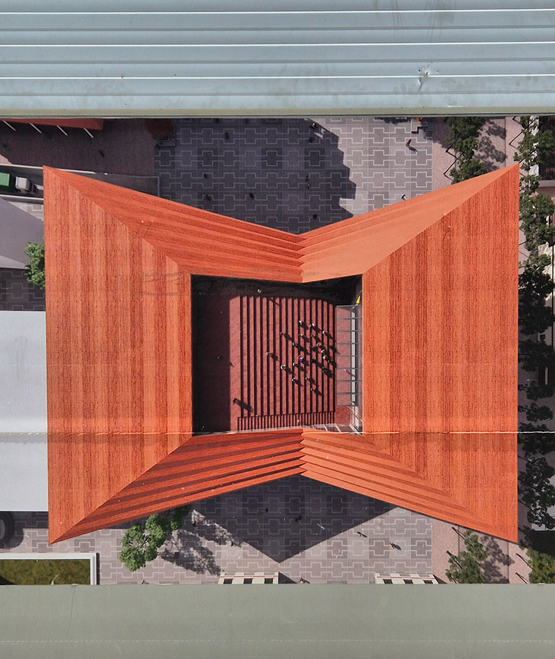 L’edificio storico, demolito nonostante la cittadinanza fosse contraria, lascerà il posto al nuovo per rispondere alla fiorente scena artistica nella capitale, un volume “a papillon” di oltre 9mila mq, ottenuto sollevando il prisma al centro e creando così piazze pubbliche, collegamenti e l’opportunità per spettacoli sotto l’edificio.