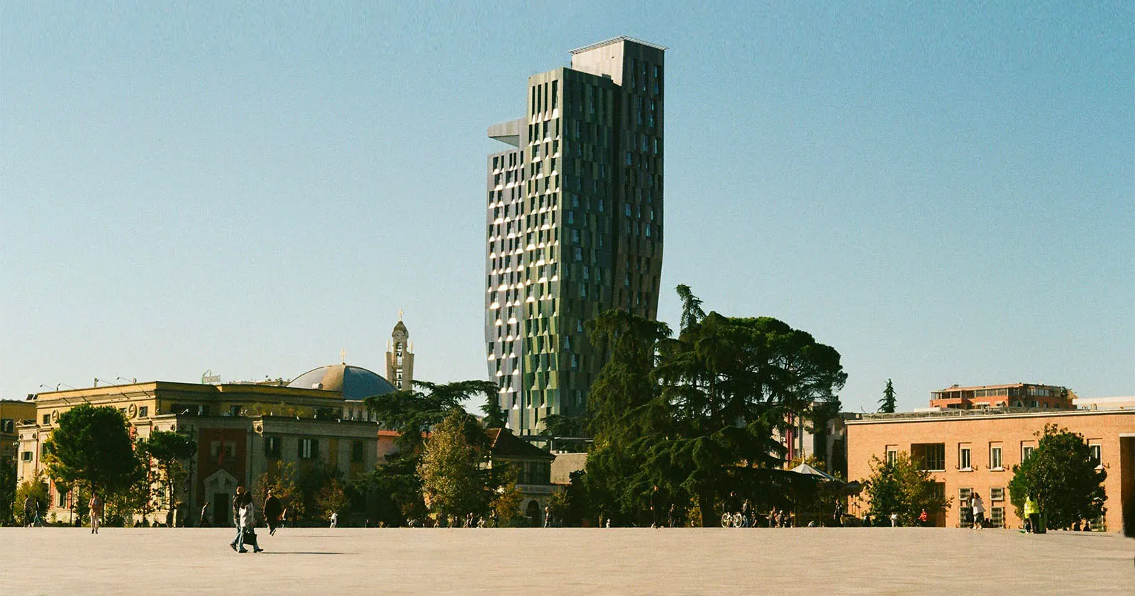 Prima tra tutte, la torre ad uso misto DOWNTOWN ONE, attualmente il grattacielo più alto di Tirana. Disegnato sempre da MVRDV, l’edificio di 37 piani e 77.000 metri quadrati presenta una serie di case e uffici a sbalzo, che formano un motivo in rilievo sulla superficie, una “mappa” pixelata dell’Albania, ciascuna rappresentante una città o un paese, trasformando questo edificio in un’icona.