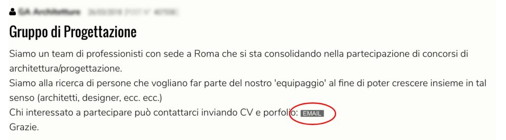 Un meccanismo automatico individua gli indirizzi email pubblicati nel testo dell’annuncio e li oscura. Al loro posto viene pubblicato un piccolo pulsante che permette l’invio di un messaggio diretto a quella email senza che chi scrive ne conosca l’indirizzo.