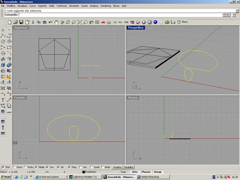 utilizziamo lo strumento loft e selezioniamo prima una e di seguito l’altra curva. premendo ok otterremo un oggetto simile a questo: