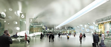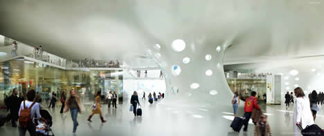 Il Tubo funziona da collegamento tra la Piastra e l’Isola. Si sviluppa su due livelli come ponte intermodale; il movimento è garantito da tapis roulant che attraversano spazi commerciali.