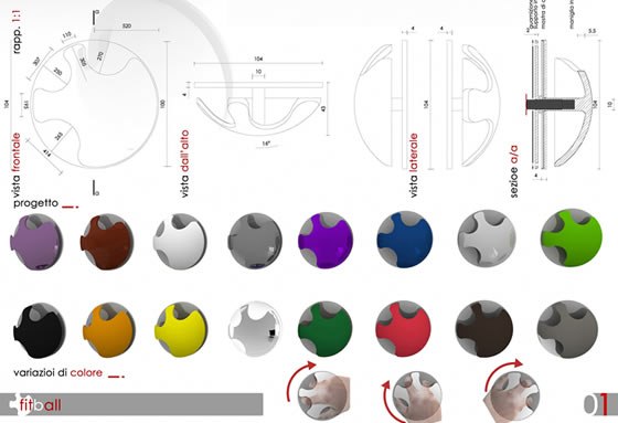 Il Terzo premio è stato conferito al progetto FITBALL dell’architetto Lyorgos Lambrinopoulos di Napoli, con studio a Salerno, con Valerio Salinas e Vincenza Pepe con la seguente motivazione: “Uno studio attento delle funzionalità dell’oggetto risolve la maniglia con un’inedita soluzione formale adatta anche ad un uso ampliato secondo i principi del design for all“.