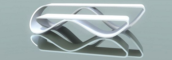 Il nome del progetto deriva dalla forma della panchina: un singolo elemento che si muove nello spazio e gira su se stesso creando due sedute su due livelli differenti (+40 cm e +60 cm) legati tra loro. Le proprietà di stampaggio a caldo e la mancanza di giunzioni hanno contribuito a ispirare questa forma fluida, continua e curva per creare un oggetto che nella sua semplicità diventa una scultura.
