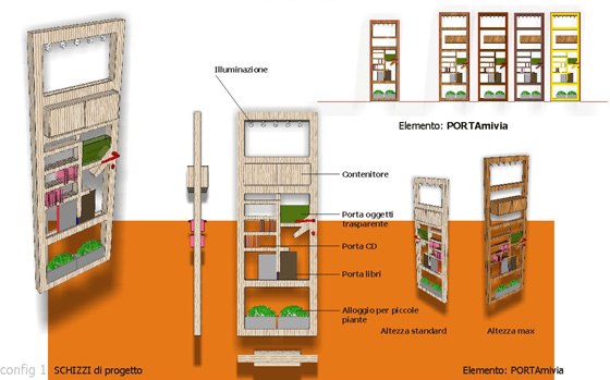 Modificare e destrutturare una porta per rispondere alle nuove esigenze domestiche ed ai mutevoli modelli abitativi è questo il concept alla base di PORTAmivia. La porta così ideata acquista nuove funzionalità, diventa un elemento di continuità con gli ambienti e non più di separazione. Tra le varie sezioni adattabili è possibile anche posizionare l’illuminazione come se fosse una parete attrezzata.