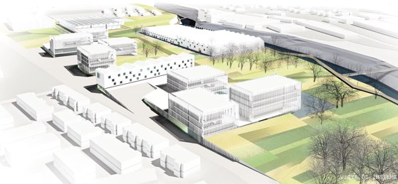 Motivazione: progetto ambizioso per lo sviluppo di un masterplan fortemente modificativo dello stato di fatto. La riduzione e concentramento delle volumetrie ha permesso la formazione di ampie aree verdi che connettono il tessuto alle aree lungo il fiume Brembo.