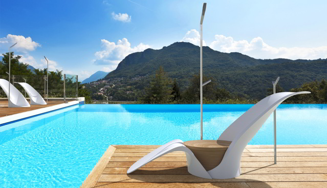 “Longue Shower” è un oggetto originale ed innovativo ma soprattutto multifunzionale: chaise longue, doccia e lavandino, ma anche seduta e tavolo per esterni. Questa proposta ricade all’interno di una nuovissima categoria, quella dell’arredobagno outdoor per il settore contract:. Completamente realizzato in Cristalplant®, “Longue Shower” sarà marchiata Falper e inserita nel catalogo dell’azienda a partire dal 2014. Le forme assolutamente nuove, le molteplici funzionalità del sistema e la carica innovativa appaiono quasi futuristiche.