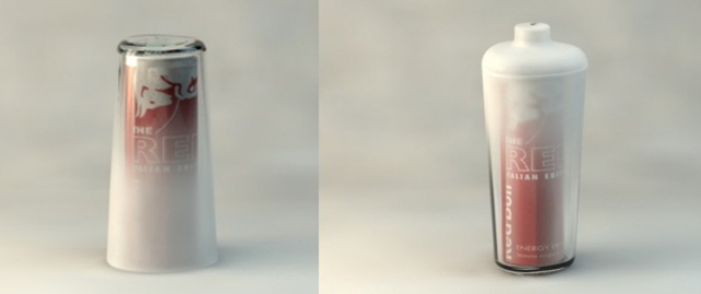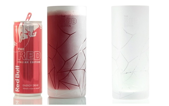 «Ispirato alla forma della linguetta della lattina, il progetto ha saputo coniugare forza comunicativa e coerenza tra contenuto e contenitore e ha ottenuto i favori di una giuria di esperti». All’interno del bicchiere cilindrico viene creato un vuoto che assume la forma della sagoma della linguetta della Red Bull. «La grafica impressa sul bicchiere gioca sulla fusione del colore rosso della bevanda, sul logo di The Red Italian Edition e il logo di Red Bull. Quando il bicchiere è pieno, la bevanda fa emergere il logo Red Bull, quando il bicchiere è vuoto il logo “Red” diventa visibile».