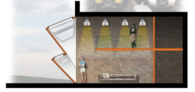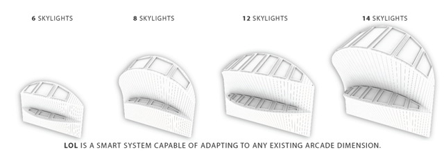 La proposta si preoccupa di utilizzare la finestra come un nuovo elemento architettonico. L.O.L. nasce come alternativa al sistema di chiusura verticale utilizzato finora. L’idea è creare una doppia struttura sporgente in cima alla quale collocare una serie di lucernari. In questo modo si provvede a fornire luce naturale all’interno, migliorando notevolmente la sensazione di privacy. Molte arcate infatti si affacciano su strade pubbliche o su giardini privati.