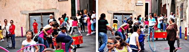 Dapprima il progetto ha agito sugli spazi intorno alla scuola che potrebbero essere dei bambini se non fossero impiegati come parcheggio. Nei primi mesi le classi hanno quindi intrapreso un percorso di riscoperta dei giochi di strada, anche attraverso interviste ai nonni ed ai genitori.