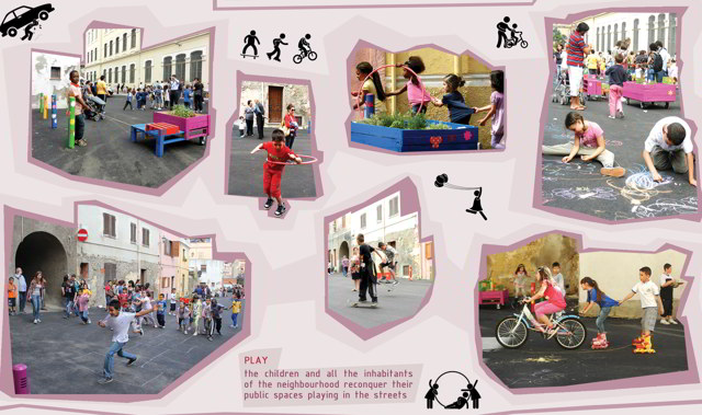 Con la forza dirompente dei bambini, il progetto ha poi avviato, tra gli adulti, una riflessione sui diritti urbani e sulle necessità di riequilibrare le funzioni degli spazi pubblici, fortemente sbilanciate in favore delle categorie dominanti.
