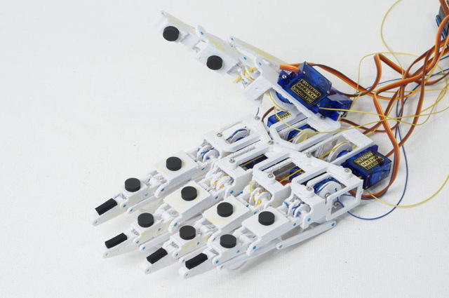 Handie è una protesi di mano robotica poco costosa, dotata di sensori mioelettrici integrati in grado di leggere i segnali inviati dal cervello. I costi sono stati ridotti utilizzando uno smartphone per calcolare gli impulsi elettrici sulla superficie della pelle. Tutti i componenti della mano sono facilmente modificati e riprodotti utilizzando una stampante 3D.