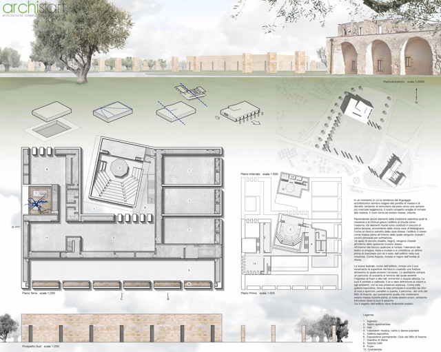 L’associazione culturale archiStart, con il patrocinio del Comune di Melpignano (LE), comunica i risultati del concorso internazionale di idee “Taranta Power Station”. Studenti e neolaureati hanno affrontato il tema della progettazione di un edificio multifunzionale dove accogliere spazi di servizio per l’evento della “Notte della Taranta” e spazi didattici e museali per la destagionalizzazione della rassegna.