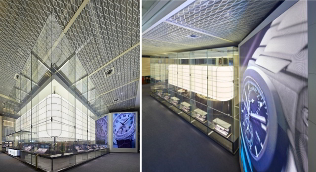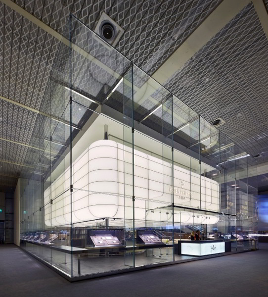 L‟idea dell‟architetto, selezionata dalla maison di Ginevra in seguito ad un concorso internazionale, è stata quella di realizzare un padiglione che si allontanasse dalla tradizionale idea di stand come blocco opaco, dando vita invece ad un futuristico involucro di vetro, che parla il linguaggio della trasparenza e della leggerezza.