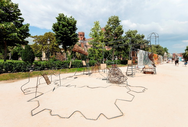 La Cittadella, oggetto dell’installazione è parte della storia degli amori e delle antipatie della città di Barcellona. E’ stata eretta dopo la sconfitta dei catalani (11 settembre 1714). Si trattava di una sorta di fortezza militare che aveva un doppio obiettivo: difendere la città da attacchi esterni e reprimere i cittadini che contestavano il potere dominante. Nel 1869 le sue pareti vennero demolite.