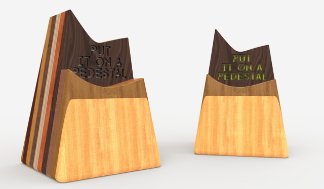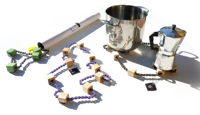Secondo classificato il progetto “Leonardo” di Diego Marinelli. Dagli scarti della lavorazione del legno e da una catena di bicicletta usata nasce un prodotto di design polifunzionale che può funzionare da sottopentola o da alzatina per notebook.