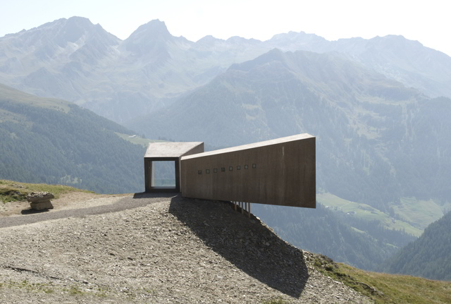 Progetto: Werner Tscholl Architekt. Realizzazione: 2009-2010-2011, Passo Rombo, Tirolo (Austria) – Bolzano (Italia)