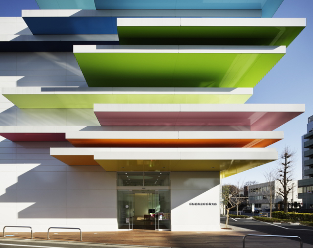 Così si realizzarono tre filiali che richiamassero il rapporto con la natura e nelle quali il colore fosse lo strumento per creare un ambiente luminoso e cordiale: Tokiwadai Branch “leaf”: una silhouette di alberi in facciata e serigrafie di alberi sui vetri, si sovrappongono al fogliame naturale in sette cortili interni luminosi, come in una foresta magica. Shimura Branch “rainbow mille-feuille”: la facciata imita i colori dell’arcobaleno, che si combinano con il cielo sopra di essa. Così le persone sono portate spontaneamente a guardare il cielo e si accorgono di quanto sia bello anche in una città tanto densamente costruita. Ekoda Branch “rainbow shower”: ispirato alla frenetica attività dell’area, il sistema di aste multicolori alte 9 metri, unisce l’interno e l’esterno, creando un’interfaccia indistinta tra la strada e l’edificio.