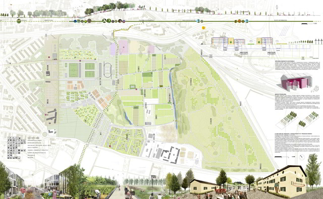 Il progetto crea uno spazio libero, aperto e permeabile con l’idea di frenare l’espansione della città verso sud e nel quale potersi sentire al sicuro. I giovani progettisti pensano, allora, ad un sistema di percorsi che connettano la città esistente (quartiere Mazzini) con il parco agro-forestale, con le cascine e con il sistema ciclo-pedonale esistente.