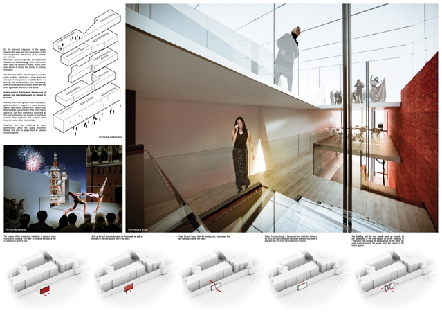 Progettare un padiglione temporaneo per educare la popolazione alla tolleranza sociale, politica e religiosa, da erigere nella Piazza Rossa a Mosca. Era il tema di un concorso internazionale bandito dai giovani professionisti del team di HMMD.