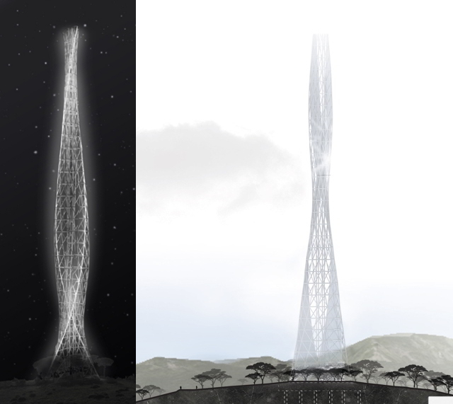 Il progetto è ispirato all’arte cinetica. L’antenna, in questo caso un fuso alto, snello e leggero, crea l’illusione di un elemento flessuoso, che ondeggia al mutare della posizione dell’osservatore lungo la costa, ruotando attorno al suo asse e trasfigurandosi in una moltitudine di oggetti differenti costituendo un landmark dinamico. Sia la torre che il parco sono stati pensati per essere costruiti con materiali riciclabili al 100% come legno e acciaio, completamente smontabili e riusabili.