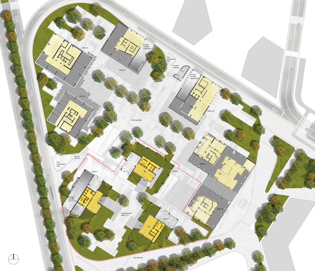 Gli edifici progettati dal team di Mario Cucinella occupano una parte del masterplan. «Il progetto nasce da un complesso lavoro di affinamento delle forme e delle volumetrie sviluppato insieme ad altri progettisti, chiamati ad occuparsi di questo lotto funzionale, nell’intento di coordinare e far coesistere le diverse volumetrie richieste», spiegano dallo studio dell’architetto Cucinella.