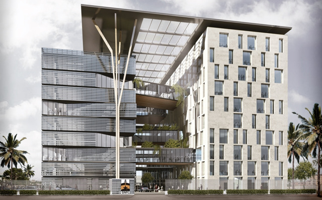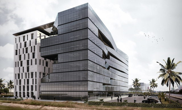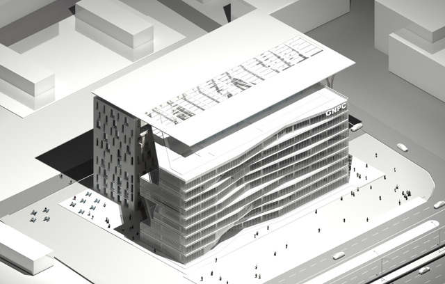 Il nuovo headquarter della “Ghana National Petroleum Company” ad Accra sarà progettato dai professionisti degli studi romani Bicuadro, O.C.R.A e 3+1, capitanati dall’architetto Stefano Farcomeni. Il giovane team ha potuto contare sul supporto tecnico di partner locali e di importanti realtà ingegneristiche quali S.B.G. & Partners e Hydroingea. L’edificio, certificato LEED, sarà composto da 10 piani fuori terra e 3 interrati e dotato di un attico con roof garden per eventi corporate e sale riunioni panoramiche.