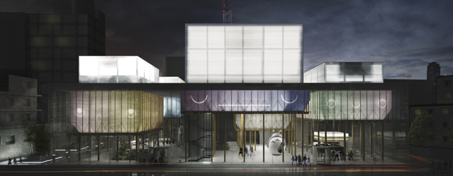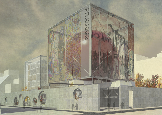 Per la competizione Tokyo Pop Lab hanno immaginato due grandi cubi leggeri e sopraelevati dal suolo. Uno di essi ospita laboratori di ricerca sui mass media e l’altro è dedicato alla sperimentazione. Quest’ultimo appare come una sfera rossa ricoperta da una scatola rivestita di immagini, ossia da una sorta di velo. Un muro in cemento separa il marciapiede esterno dalle attività che si svolgono nel Pop Lab, che comprende una corte pubblica ed una galleria.