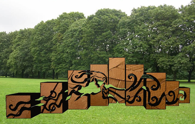 L’opera rappresenta la fusione tra le creazioni della natura e quelle dell’uomo. In parallelepipedi freddi e squadrati, simili alle costruzioni in cemento, si inseriscono delle linee sinuose, che costruiscono la figura di una donna. L’opera richiama gli skyline delle grandi metropoli ma anche chi le vive, ovvero l’uomo. L’opera, composta da parallelepipedi di altezze differenti, mostra varie forme a seconda del punto da cui la si osserva: dalla composizione di figure geometriche astratte alla completa visualizzazione della figura antropomorfa in essa rinchiusa.