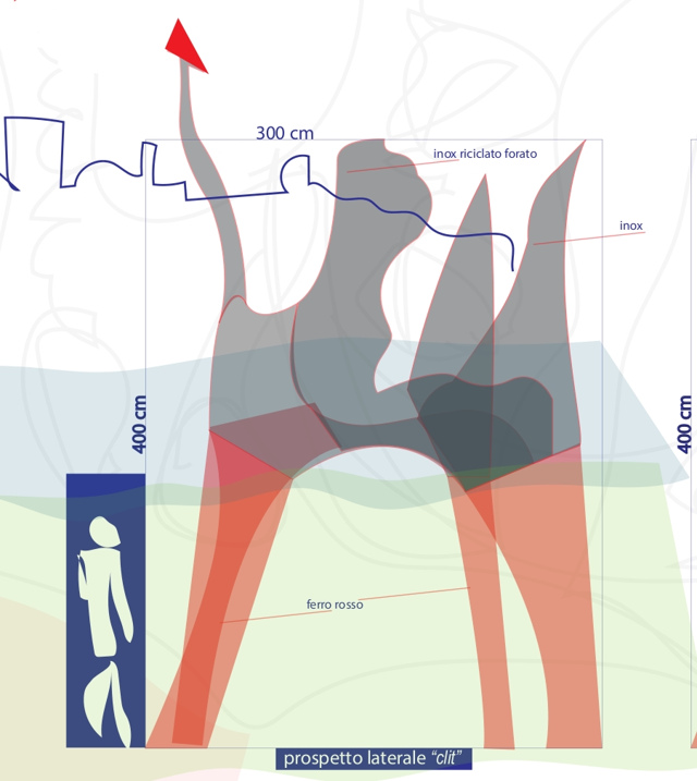 Si tratta di un omaggio ad Alexander Calder, posizionato nel parco con il bacino del Mincio ed il profilo della città di Mantova alle spalle. La sua figura vuole essere un inno ed un ringraziamento al sapere ed al sentimento che muove tutte le persone di “Mantova Creativa” nell’intento di valorizzare il Parco con l’aiuto dell’arte – da sempre un grande sentimento che muove ormai con linguaggi diversi tante menti rispettose dell’ambiente per il riciclo dei materiali, ma pur sempre luccicanti, che al riflesso del sole cercano di richiamare l’attenzione di chi dalla città voglia avvicinarsi alla natura e lasciarsi andare per qualche istante. “Clit” è stata pensata per essere vissuta ed attraversata dalle persone che potranno passarci sotto.