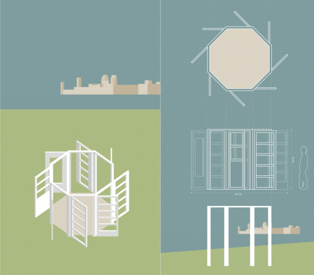 L’installazione è composta da otto porte che racchiudono in un ottagono un pavimento di ghiaia: la decontestualizzazione di un oggetto comune, come una porta, all’interno di uno spazio naturale, crea nuovi significati amplificandoli e rendendoli percepibili. Le otto porte aperte, creano un limite inconsistente che, una volta attraversato, permette al visitatore di fermarsi e contemplare questo spazio di transizione estraneo alla realtà, oppure entrare da una porta e rapidamente uscire da un’altra.