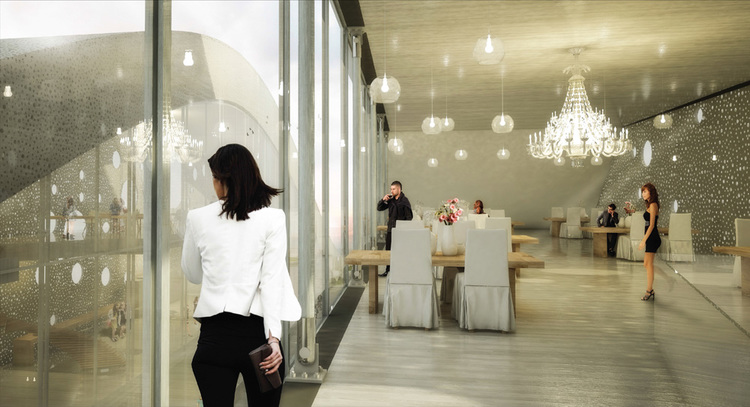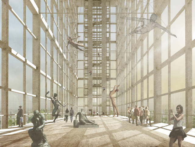 Al terzo posto una coppia anglo-statunitense, formata da James Mak e Alison Cheng che immaginano un volume surreale ed etereo, una sorta di dirigibile che sovrasta l’edificio esistente. Si tratta di un omaggio al progresso tecnologico e all’Esposizione Internazionale del 1910 dedicata ai mezzi per la conquista del cielo.