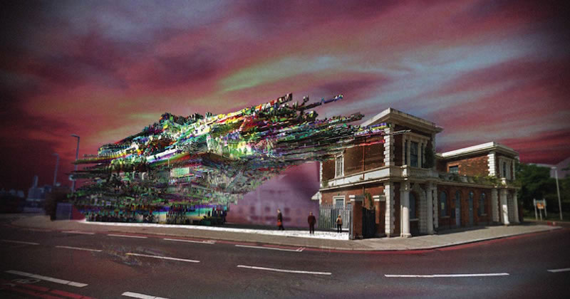 Essendo quasi completamente interrato, l’edificio sembra non avere un luogo ben preciso facendosi portavoce di una natura virtuale, ovvero quella di internet. La scelta dell’ologramma sembra essere legata all’incapacità di rappresentare materialmente ciò che non ha nulla di fisico, proprio avviene per ciò che è in rete.