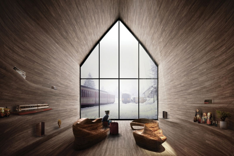 Il progetto ha conquistato il secondo posto grazie al potenziale che ha di diventare un punto di riferimento importante lungo la rotta ferroviaria, essendo una rappresentazione chiara, essenziale e coerente di una capanna in legno.