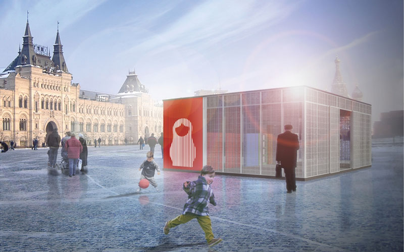 Trattandosi di una soluzione estremamente versatile, la stessa struttura può essere posizionata a Mosca, a Kazan o a Ulaanbaatar mantenendo esattamente lo stesso aspetto ma, contemporaneamente, cambiando del tutto, grazie al diverso riflesso che si può vedere sui suoi pannelli.