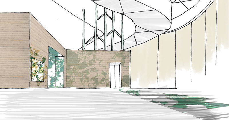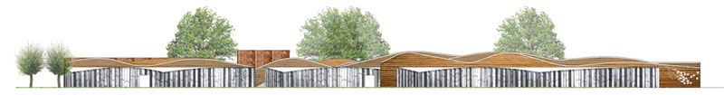 A partire da queste linee è stato sviluppato il concept di un edificio dotato di spazi esterni adeguati ad ospitare gli 80.000 visitatori annui previsti e ben inserito nel paesaggio circostante.