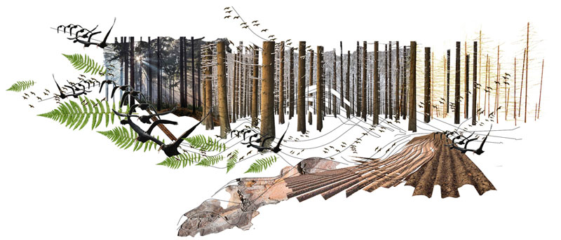 Il progetto vincente sarà costruito nel cuore di una serie di altopiani dove il passaggio è definito dalla presenza di foreste dense, piccole urbanizzazioni, aree agricole e pascoli. Durante il sopralluogo, il team di progettazione ha osservato gli uccelli e le greggi e ha cercato di proiettare quelle stesse linee sinuose segnate dagli animali in volo, guidati dal loro “capo”, sul suolo agricolo.