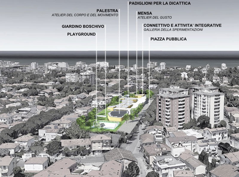 La proposta, risultata particolarmente interessante in prima fase, è stata selezionata dalla Giuria per le scelte di articolazione volumetrica che colgono al meglio alcuni elementi della pedagogia zavalloniana.