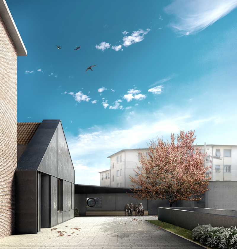 Il progetto di OPPS architettura travalica la scala dell’edificio e, andando a ridisegnare gli accessi al fabbricato dell’ex cinema e proteggendolo dalla contigua ferrovia, va a generare nuovi spazi pubblici, resi accoglienti e “domestici” con pochi e calibrati gesti.