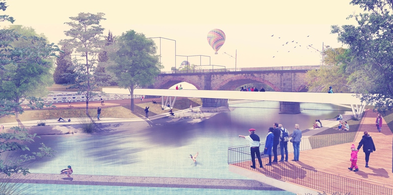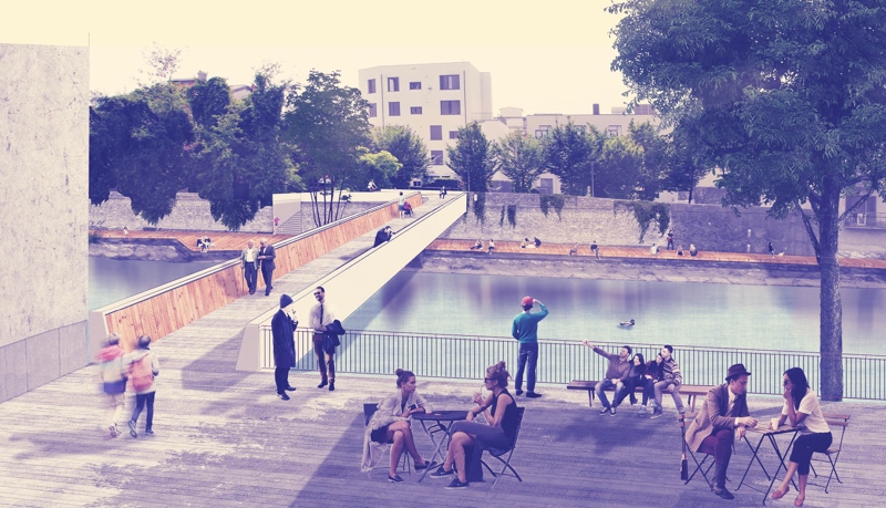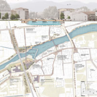 Rigenerare il cuore della città, interessato, come tanti centri storici, da fenomeni di esodo, ricercando nuove relazioni tra i luoghi, agendo sui collegamenti e creando nuovi e strategici usi, era l’invito rivolto ai professionisti. Il progetto vincitore risponde prevedendo un nuovo sistema di spazi pubblici e nuovi usi, mentre la strategia pensata per dare centralità al fiume passa per la creazione di due nuovi ponti e per un lavoro sugli argini che punta a renderli vivibili.