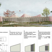 Riscontrato il deterioramento della forma urbana negli ampliamenti relativamente più recenti dell’area di Selargius, l’intervento pone il suo punto di partenza nell’indagine sulle pratiche insediative dell’architettura tradizionale locale, basate sul modello della tipologia a doppia corte, tipica del Campidano meridionale. Il lotto è delimitato da un muro di cinta dal quale spuntano le fronde degli alberi dell’orto botanico richiamando così dall’esterno la dimensione misteriosa dell’hortus conclusus medievale.