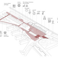 Il progetto proposto da larchs architettura ricerca invece un nuovo equilibrio possibile tra lo spazio delle relazioni, attualmente inesistente, e quello della mobilità, lo spazio viene quindi riorganizzato in modo più razionale distinguendo una zona ad uso esclusivo della socialità, a supporto dell’edificio della stazione e delle scuole.