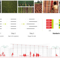 Francesca:  Cercare un modello di scuola nuovo e dinamico, tentando di trasformare le limitazioni del sito in opportunità, è stato il nostro punto di partenza. I muri delle classi sono costruiti compattando la terra locale, mentre una leggera struttura lignea solleva i tetti che sono a zig zag, permettendo alla luce zenitale di entrare all’interno dell’edificio e generando una ventilazione naturale. La vegetazione del giardino, invece, si trasforma in prosecuzione dei portici creando degli spazi per studiare all’aperto. Per realizzare un progetto dal design originale, economico e facilmente replicabile, che valorizzasse il sapere locale, abbiamo deciso di utilizzare l’antica tecnica costruttiva della terra battuta, considerata oggi in Africa una tecnica per poveri. Infatti in molti Paesi dell’Africa, con la modernizzazione, si è innescato un processo di progressivo abbandono delle tecniche costruttive locali e dei materiali reperibili in natura, perché interpretati come un qualcosa per poveri. Soluzioni tradizionali locali che sono state sostituite da tecniche costruttive improvvisate e dall’utilizzo di materiali industriali considerati più moderni di quelli naturali disponibili in sito, ma assolutamente inadatti al clima locale, costosi e dalle pessime performance termiche.