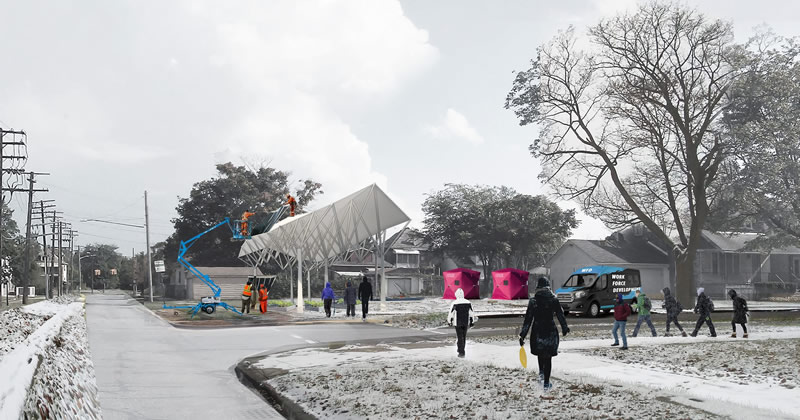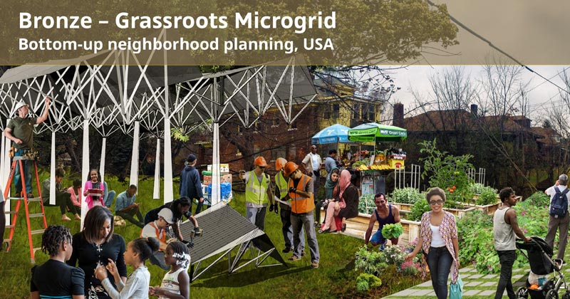 Il terzo posto è stato assegnato al progetto di pianificazione condotto dalla comunità di quartiere Grassroots Microgrid, si tratta di un’infrastruttura collettiva per la produzione di energia e cibo sfruttando un lotto vuoto nella città di Detroit, un nuovo paradigma economico per il rinnovo delle comunità.