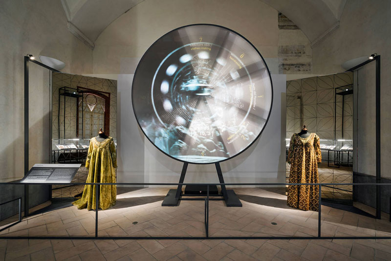 Il progetto espositivo permanente, ad opera della coppia di architetti milanesi, si inserisce infatti con leggerezza all’interno del Maschio del Castello di Vigevano, proponendo un’esperienza immersiva, grazie all’utilizzo di messaggi multimediali, che lascia intatta la lettura delle sale storiche.