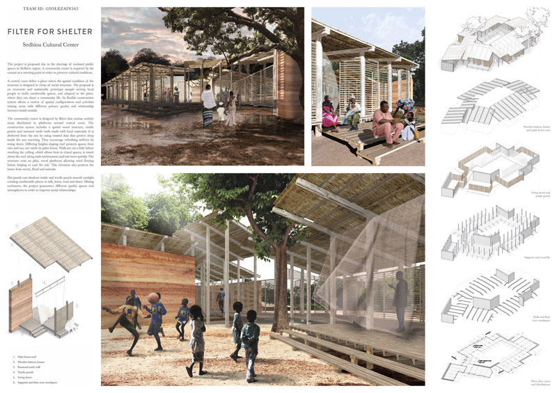 La proposta del raggruppamento spagnolo GIOLEZAIN562 prevede l’ideazione di un prototipo semplice, economico e sostenibile capace di permettere agli abitanti di Sédhiou di costruire spazi confortevoli e adatti a condividere una vita di comunità.