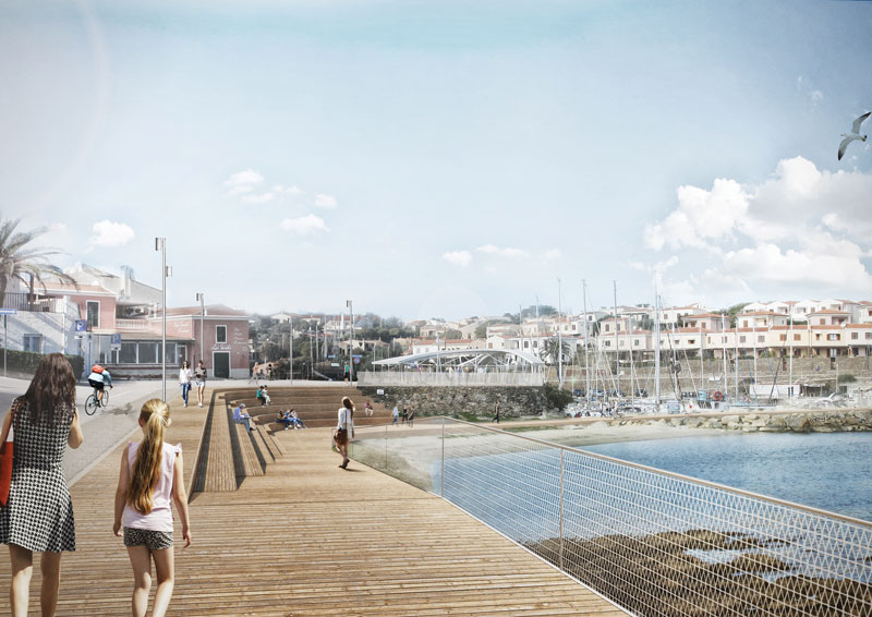 La proposta dello studio sardo è un intervento dinamico che potenzia le relazioni tra paese e porto, proponendo una sequenza di spazi e aree di interazione e fruizione fra terra e mare.