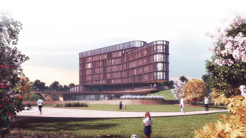 Su di un’area di 35 mila mq i concorrenti hanno progettato un centro direzionale a servizio delle strutture operative già in esercizio e a quelle in fase di costruzione, comprensivo di una moderna scuola di cucina, sale riunioni, cineteca e biblioteca, per favorire le relazioni tra azienda, clientela e territorio.